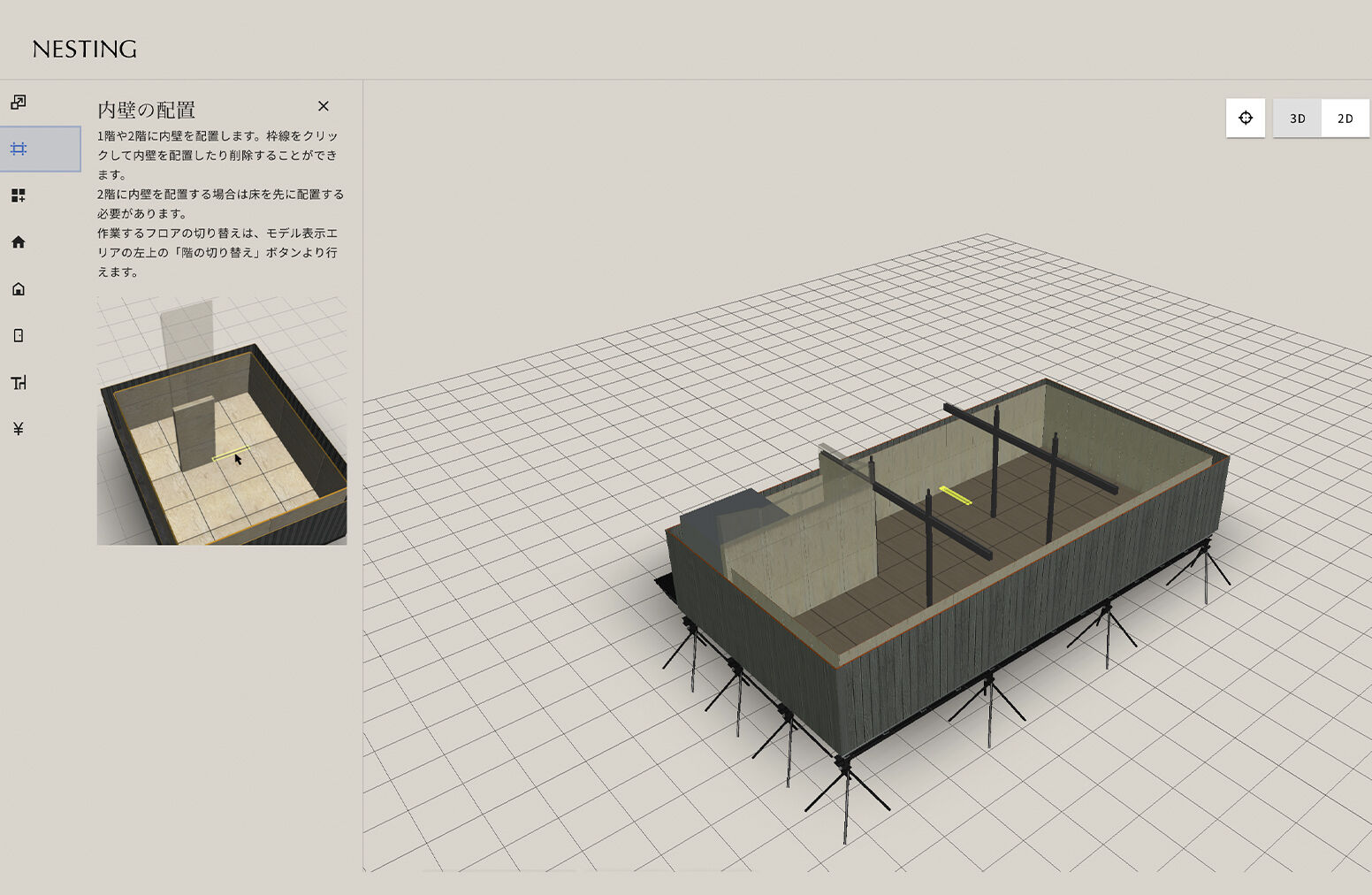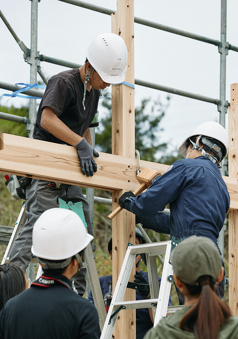 NESTINGは自分でカスタマイズしながら設計し、家族や仲間、まちの人々と共に家や拠点を建てることができます。設計内容に沿って木材を加工するデジタルファブリケーション技術を使い、寸法通りに加工された建築キットをお届け。誰もが自分たちの欲しい場所をつくれます。「買う」から「みんなでつくる」へ。つくることが関係性の輪を広げ、新しい価値を生み出します。