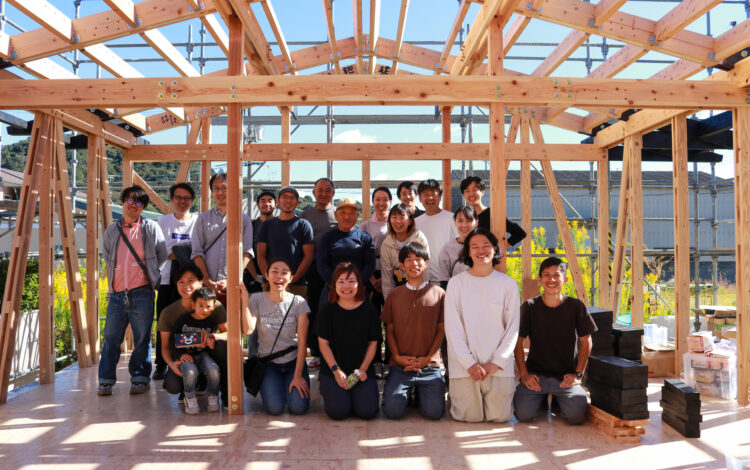 建方の日には、お施主さまの友人も10名ほど集まり、みんなでco-build開始!