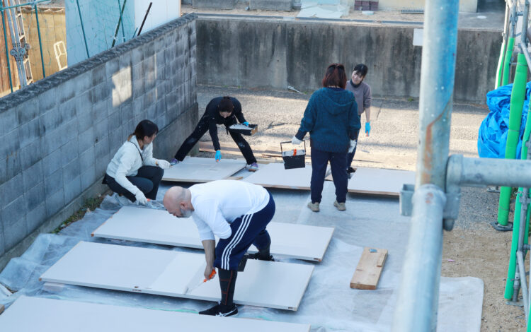 この日は、東京から友人も集まってくださり、みんなで塗装ワークショップが開催されていました。
