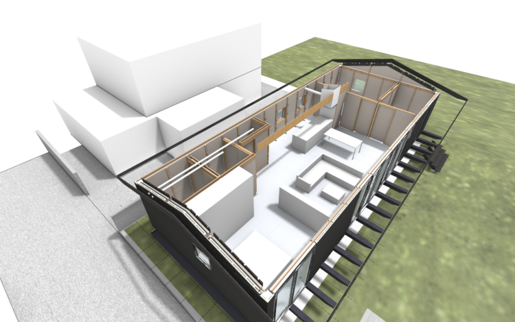 NESTINGチームでは、隣地との関係性や、室内の間取りについてなどスムーズに議論を進めるために、3DのCGモデルを作成。